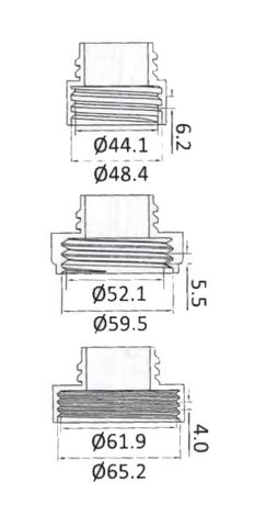Különböző méretű szerelvények a kivezető tartályra való csatlakozáshoz.