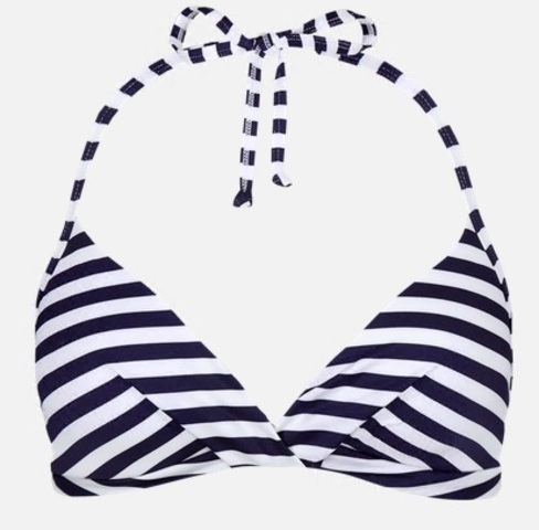 A Custe Halter bikinifelső típus: kivehető párnázással és csavart hajtással az elején készült. A nyakon megkötő pántok találhatóak, hátul kapoccsal záródik.