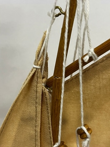 Részletes leírás:Vitorláshajó modell, fából, vászon vitorlával. Hossza 15cm, magassága 22,5cm.