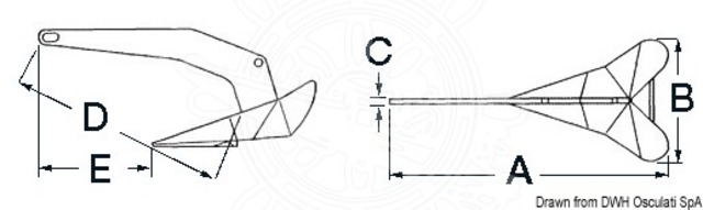 Részletes leírás:Ajánlott max. 21 méteres motoros hajókra, max. 18 méteres vitorlás szabadidő hajókra és max. 24 méteres vitorlás verseny hajókra. Teljes hosszúság(A): 1040mm, teljes szélesség(B): 430mm, teljes magasság(E): 420mm, szár vastagság(C): 20mm, (D): 800mm.