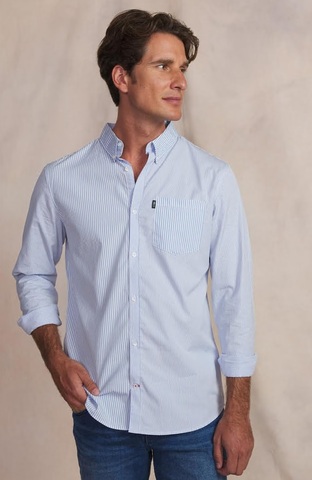 TBS Eydenche hosszú ujjú, galléros, vékony ing, anyagában csíkos. Anyaga: 100% pamut.