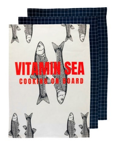Részletes leírás:Marine Business konyhai törülköző szett, 3db-os. (2db sötétkék, fehér kockás, 1db világos színű, halakkal, felirattal: Vitamin Sea Cooking on Board). Anyaga 100% pamut. Mérete: 50 x 70cm.