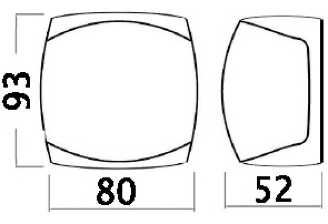 Szélesség: 80 mm, mélység: 52 mm, magasság: 93 mm.