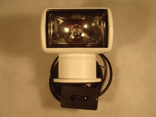 Részletes leírás:UVálló,vízzáró, szögletes formájú fehér műa.házban. Jabsco távirányítós lámpa.360°-ban körbe forgatható, billenési szög 30 fok. 50W-os halogén izzóval. Méretei 185x180x210 mm. Távirányítós, 4 m-es kábellel.