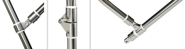 3 boltíves keret, AISI316-os rozsdamentes váz 25mm-es cső. Az anyag 100% poliészter (600D) kék színű, vízálló és UV álló.