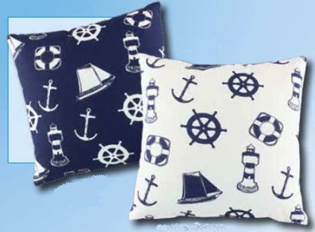 Részletes leírás:Sea-Club tengeri párna mintákkal. Egyik oldala sötétkék, a másik oldala fehér színű.