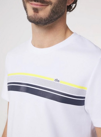 Részletes leírás:TBS férfi, rövid ujjú, kereknyakú póló. Testreszabott, elől mell részén csíkos. Egyszerű, kényelmes viselet a mindennapokra. Anyaga 100%pamut.