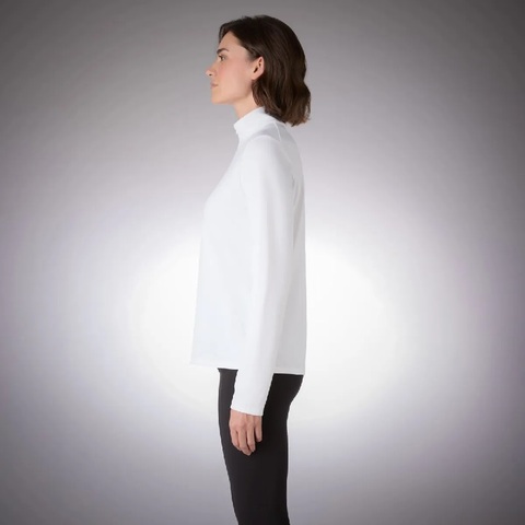YKK spirálcipzár 4 irányban rugalmas anyag Félig cipzáras kialakítás Magas gallér a kényelem és a védelem érdekében UPF 50 védelem nedvszívó képességgel Nyomtatott logók UPF 50+ bluesign® termék