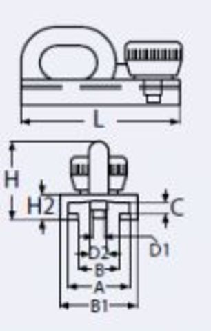 A: 27 mm, B: 20 mm, C: 4 mm, D1: 6 mm, D2: 9,5 mm, B1: 33 mm, H2: 7 mm, L: 81 mm.