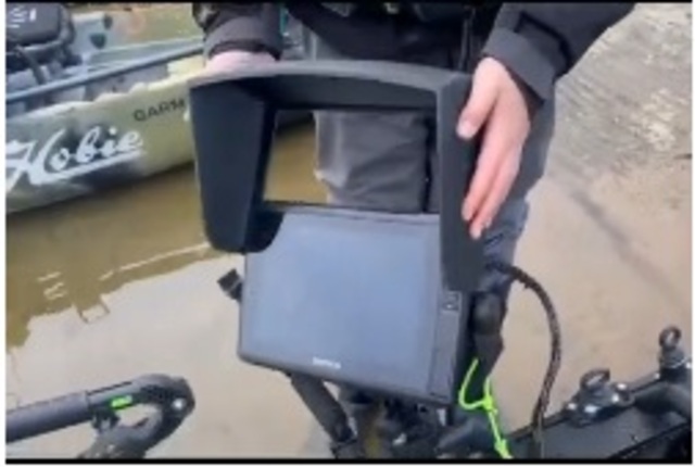 Ezt a napellenzőt úgy tervezték, hogy elkerülje a tükröződést a halradar képernyőjén, és jobban megvédje azt a fröccsenő víztől.