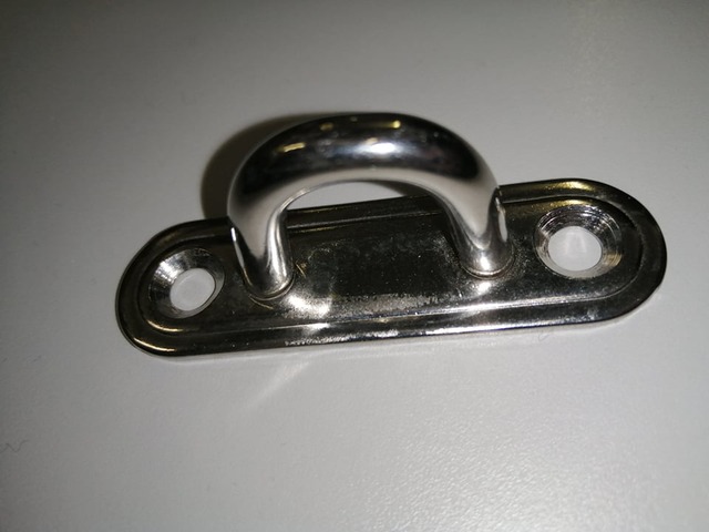 Részletes leírás:Rozsdamentes ovális talpas szem. 2 db 6-os csavarral rögzíthető. Talpméret 19x65 mm, lyuktávolság 46 mm, magasság 16 mm, anyagvastaság 6 mm.