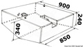 Üzemanyagtank 192l, beépíthető, kék. Szélesség: 85cm, hosszúság: 90cm, magasság: 34+3cm. Szintjeladó (opcionális) hossza 26 cm. Szintjeladó cikkszáma: 27.160.25 vagy 27.160.25.